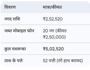 पुलिस को गुप्त सूचना मिली थी कि ट्रांसपोर्ट नगर पार्किंग नंबर 6, ‘दीदी का ढाबा’ के पास बड़ी संख्या में लोग ताश के पत्तों पर हार-जीत का दांव लगा रहे हैं। DCP (नॉर्थ जोन) मयंक गुर्जर के निर्देश पर एक विशेष टीम का गठन किया गया। अतिरिक्त पुलिस उपायुक्त आकाश मरकाम और ACP उरला पूर्णिमा लामा के नेतृत्व में पुलिस ने जब मौके पर घेराबंदी की, तो वहां भगदड़ मच गई, लेकिन पुलिस ने सभी 19 आरोपियों को धर दबोचा।