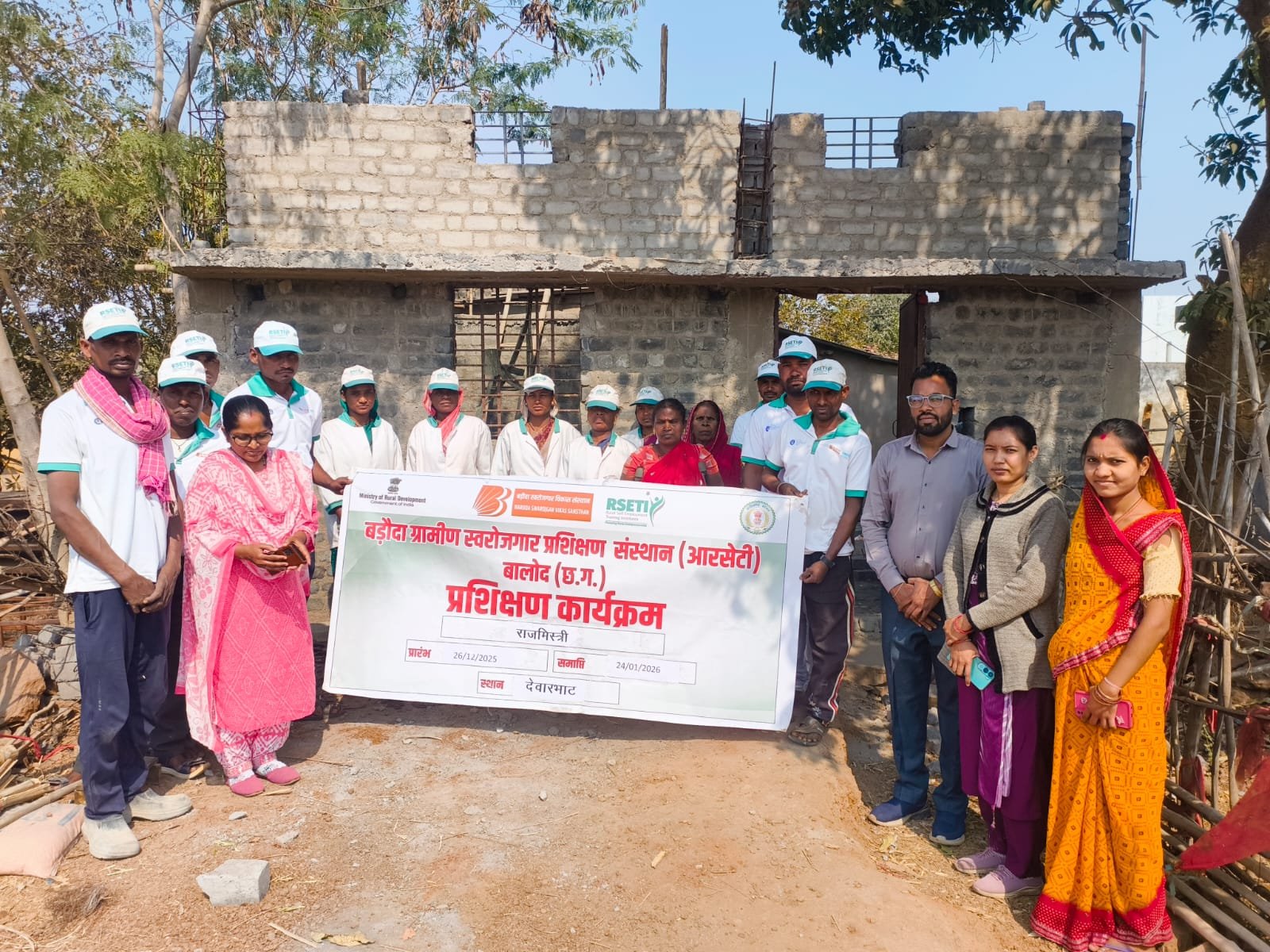 जनपद पंचायत बालोद क्षेत्र के ग्राम पंचायत देवारभाट में ग्रामीण स्वरोजगार प्रशिक्षण संस्थान आरेसटी बालोद द्वारा मनरेगा एवं प्रधानमंत्री आवास योजना के हितग्राहियों को राजमिस्त्री का प्रशिक्षण दिया जा रहा है। जनपद पंचायत के मुख्य कार्यपालन अधिकारी ने बताया कि प्रशिक्षण प्रारंभ होने से पूर्व हितग्राहियो की काउंसलिग कर उनकी अभिरूची के अनुसार चयन किया गया। 26 दिसम्बर से प्रारंभ हुए इस 30 दिवसीय प्रशिक्षण कार्यक्रम में कुल 20 हितग्राहियों को प्रशिक्षण दिया जा रहा है। जिसके अंतर्गत उन्हें प्रधानमंत्री आवास निर्माण को गुणवत्तापूर्ण एवं तकनीकी मानकों के अनुरूप करने मार्गदर्शन प्रदान किया जा रहा है। उक्त प्रशिक्षण कार्यक्रम में 05 महिलाएं एवं 15 पुरुष शामिल है। जिसमें 05 महिला हितग्राही राजमिस्त्री का प्रशिक्षण प्राप्त कर रही है जो कि महिला सशक्तिकरण की दिशा में एक महत्वपूर्ण पहल है। प्रशिक्षण अवधी के दौरान प्रशिक्षनार्थियों को मनरेगा अंतर्गत प्रतिदिवस 261 रूपये की दर से मजदूरी का भुगतान किया जाएगा। डी.एस.टी ट्रेनर ललीता नाग के द्वारा आवास निर्माण में प्रयुक्त सामाग्री के उचित अनुपात, निर्माण कार्य की समय-सीमा, संरचनात्मक मजबूती आवश्यक सावधानियों व तकनीकि पहलुओं की विस्तृत जानकारी दी जा रही है। प्रशिक्षण के माध्यम से ग्रामीणो को आत्मर्निभर बनाया जा रहा है।
