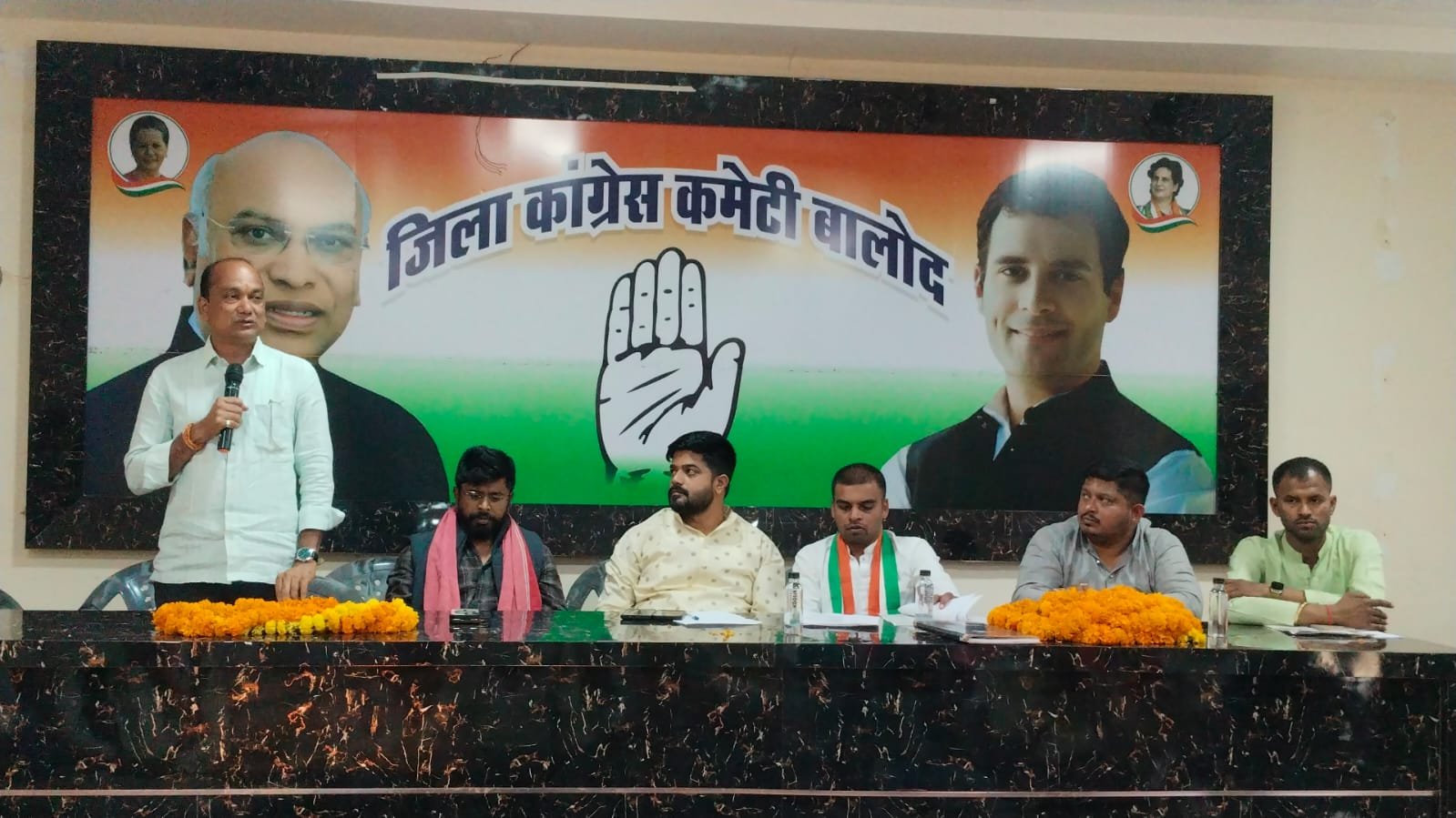 राजीव भवन बालोद में युवा कांग्रेस की जिला कार्यकारिणी बैठक जिलाध्यक्ष प्रशांत बाला बोकाडे की अध्यक्षता में संपन्न हुई। जिला कार्यकारिणी में बैठक में मुख्य अतिथि के रूप में जिला युवा कांग्रेस बालोद के प्रभारी एवं प्रदेश सचिव पंकज वाधवानी एवं जिला कांग्रेस कमेटी के अध्यक्ष चंद्रेश हिरवानी उपस्थित हुए। बैठक को संबोधित करते हुए युवा कांग्रेस जिला अध्यक्ष बाला बोकाडे ने कहा कि सभी चयनित पदाधिकारी को अब विभागीय जमीनी स्तर पर जाकर संगठन को मजबूत करने के लिए काम करने की आवश्यकता है , युवा कांग्रेस संगठन में हमेशा से युवाओं, छात्रों और आम जनता के जनमुद्दों को उठाने के लिए जानी जाती है इसलिए आप सभी युवा कांग्रेस के कार्यकर्ता सभी ब्लॉक एवं ग्राम पंचायत स्तर पर मनरेगा मजदूरों के साथ संवाद करेंगे और केंद्र सरकार की जो अच्छी राजनीति है मनरेगा कानून को खत्म करने की उसे पर गांव गांव में चौपाल बैठक कर आंदोलन की रूपरेखा तय की जाएगी।