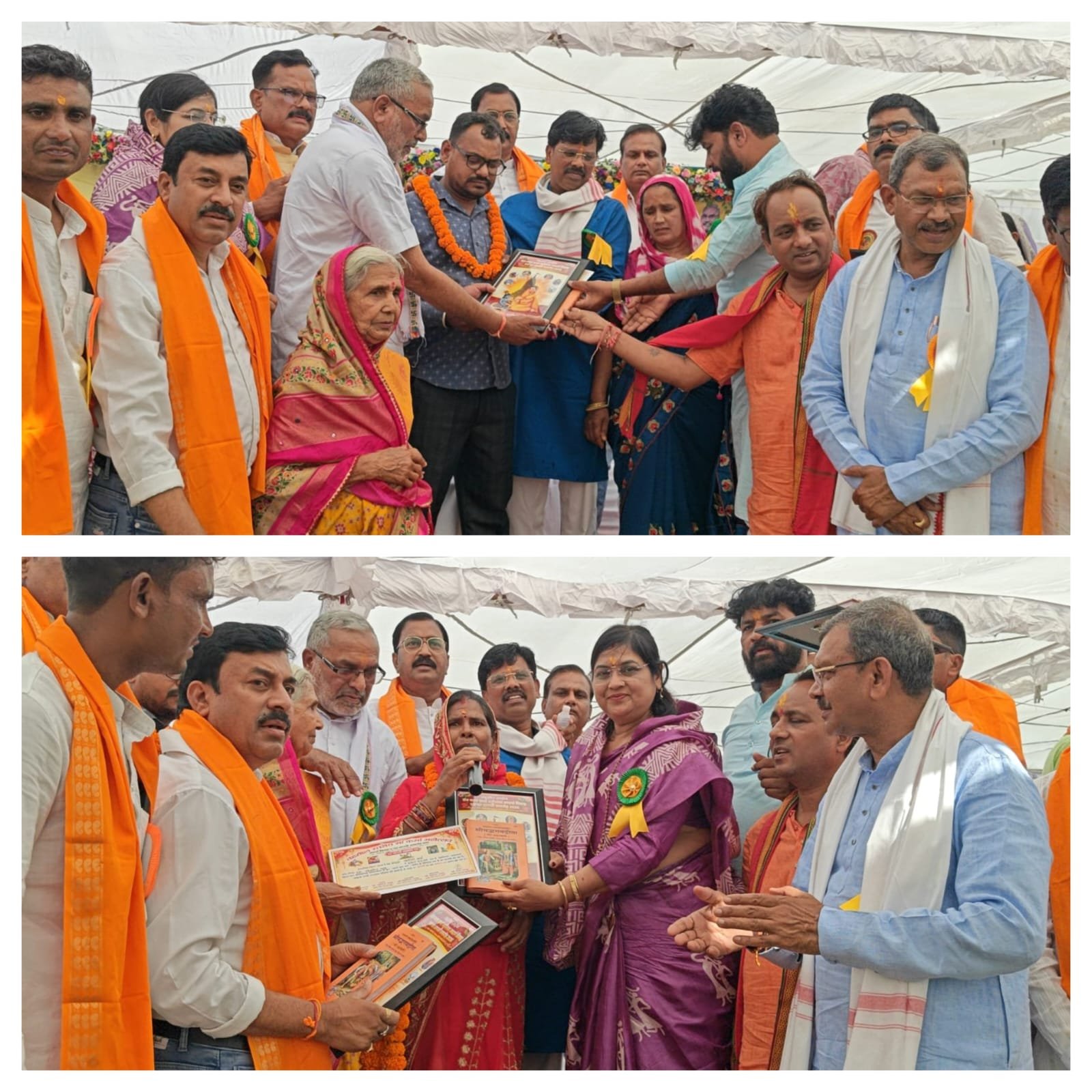 मंच पर मौजूद अतिथियों ने घर वापसी करने वाले सभी सदस्यों का आत्मीय स्वागत किया। विधि-विधान के साथ उनके पैर गंगाजल से धोए गए। इसके पश्चात उन्हें पवित्र ग्रंथ श्रीमद्भगवद्गीता, रामायण और भक्त माता कर्मा की प्रतिमा भेंट कर समाज की मुख्यधारा में पुनः शामिल किया गया। इस दौरान पूरा पंडाल ‘जय श्री राम’ के जयकारों से गूंज उठा।