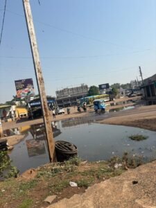 बस स्टैंड से राष्ट्रीय राजमार्ग 930 (NH-930) लगा हुआ है। पहले यहाँ से पानी की निकासी एक पुल के माध्यम से होती थी। लेकिन नेशनल हाईवे के अधिकारियों द्वारा पुराने पुल के स्थान पर पाइप डाल दिए गए थे। कचरा और मिट्टी फंसने के कारण पाइप जाम हो गए। बारिश का पानी बस स्टैंड से बाहर निकलने के बजाय वापस भरने लगा, जिससे पूरा परिसर तालाब में तब्दील हो गया।