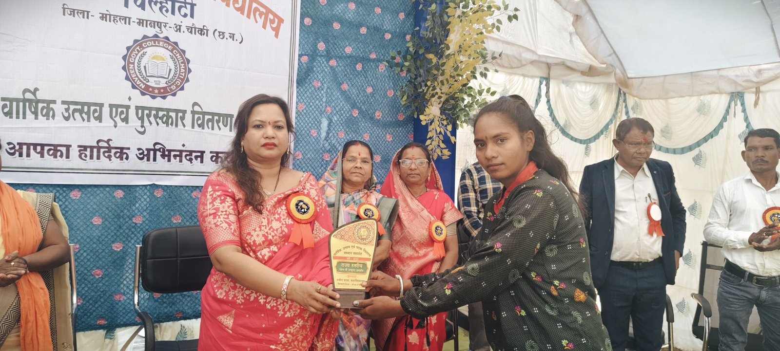 अंबागढ़ चौकी ब्लॉक अंतर्गत ग्राम चिल्हाटी स्थित नवीन शासकीय महाविद्यालय में वार्षिक उत्सव एवं पुरस्कार वितरण समारोह का आयोजन किया गया। कार्यक्रम में मुख्य अतिथि के रूप में जिला पंचायत अध्यक्ष एवं एकीकृत आदिवासी विकास परियोजना की अध्यक्ष श्रीमती नम्रता सिंह उपस्थिति रही। उनके आगमन पर महाविद्यालय परिवार द्वारा पुष्पगुच्छ भेंट कर आत्मीय स्वागत किया गया।