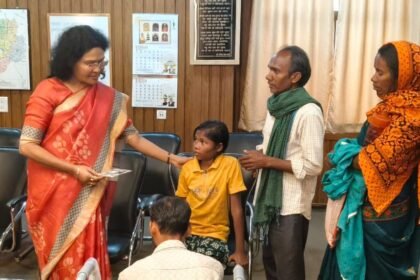 बालोद, 19 जनवरी 2026 कलेक्टर श्रीमती दिव्या उमेश मिश्रा ने आज संयुक्त जिला कार्यालय स्थित अपने कक्ष में गुण्डरदेही विकासखण्ड के ग्राम खर्रा के दिव्यांग बालिका कुमारी रीना निषाद को कृत्रिम पैर एवं वाॅ...