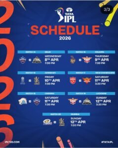 क्रिकेट प्रेमियों के लिए बड़ी खुशखबरी सामने आ गई है। इंडियन प्रीमियर लीग (IPL) के 2026 संस्करण का शेड्यूल जारी कर दिया गया है। क्रिकेट का यह महा-कुंभ 28 मार्च 2026 से शुरू होने जा रहा है, जिसका पहला मुकाबला रॉयल चैलेंजर्स बेंगलुरु (RCB) और सनराइजर्स हैदराबाद (SRH) के बीच बेंगलुरु में खेला जाएगा।