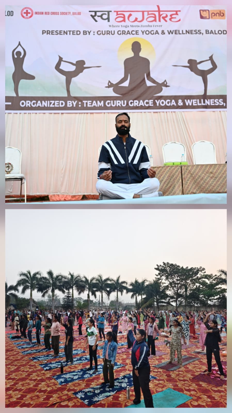 बालोद, 18 फरवरी 2026 ; गुरु प्रेस योग एंड वैलनेस टीम व ज़िला प्रशासन बालोद के सहयोग से संचालित जुंबा एवं योग के अद्भुत मिश्रण का कार्यक्रम “स्व AWAKE” का उद्घाटन दिवस काफी उत्साहवर्धक रहा। प्रथम दिवस में ही करीब 1000 ब...